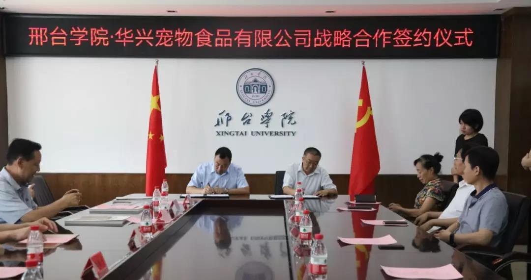 上午11時30分整,華興寵物食品有限公司總經(jīng)理冀葉軍與邢臺學(xué)院校長蔡振禹在戰(zhàn)略合作書上簽字,隨后由蔡校長代表邢臺學(xué)院進(jìn)行授牌儀式,授予華興寵物食品有限公司“實踐教學(xué)就業(yè)創(chuàng)業(yè)基地”,標(biāo)志著華興寵物食品有限公司和邢臺學(xué)院的戰(zhàn)略合作全面開始。
