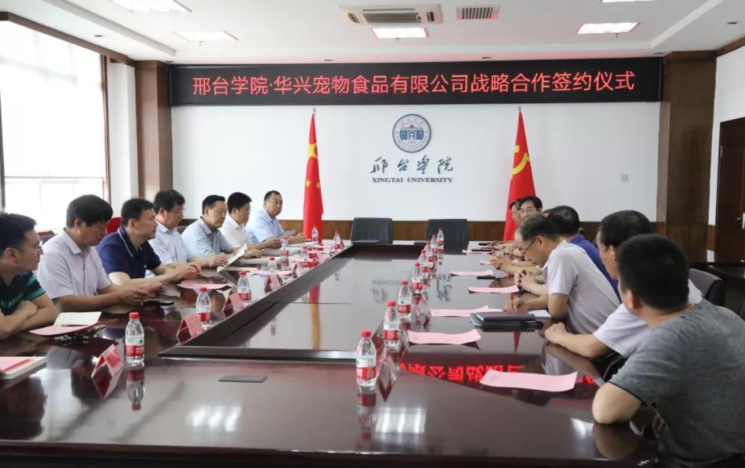 7月3日,南和縣委常委、組織部長李中伏,南和縣委常委、統(tǒng)戰(zhàn)部長樊振宇以及南和縣人大、政協(xié)、農(nóng)業(yè)農(nóng)村局等相關(guān)領(lǐng)導(dǎo)與華興寵物食品有限公司總經(jīng)理冀葉軍一行一起前往邢臺學(xué)院參加邢臺學(xué)院·華興寵物食品有限公司戰(zhàn)略合作簽約儀式。邢臺學(xué)院校長蔡振禹與校方其他主要領(lǐng)導(dǎo)成員參與了合作簽約儀式。